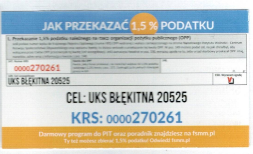 Zapraszamy do darowizny 1.5% za rok 2025. Zebraną kwotę przeznaczymy dla najmłodszych grup naszego klubu.